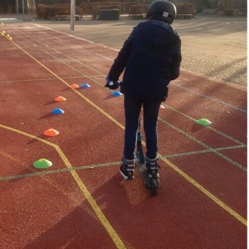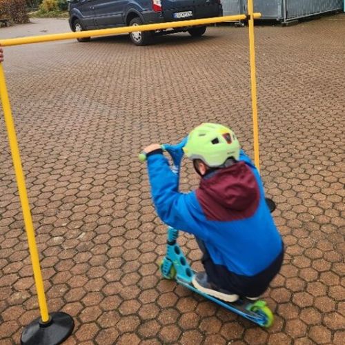 Das Roller-Fit Mobil machte in der Woche vor den Herbstferien Halt bei uns an der Pestalozzischule. Eine Woche lang wurde fleißig das Tretrollerfahren geübt, Hindernisparcours bewältigt und kleine Kunststücke einstudiert. Im Vordergrund stand der sichere Umgang mit dem Roller. So wurde das (An-)Fahren, aber auch das Bremsen sowie das Überwinden kleiner Hindernisse erprobt.